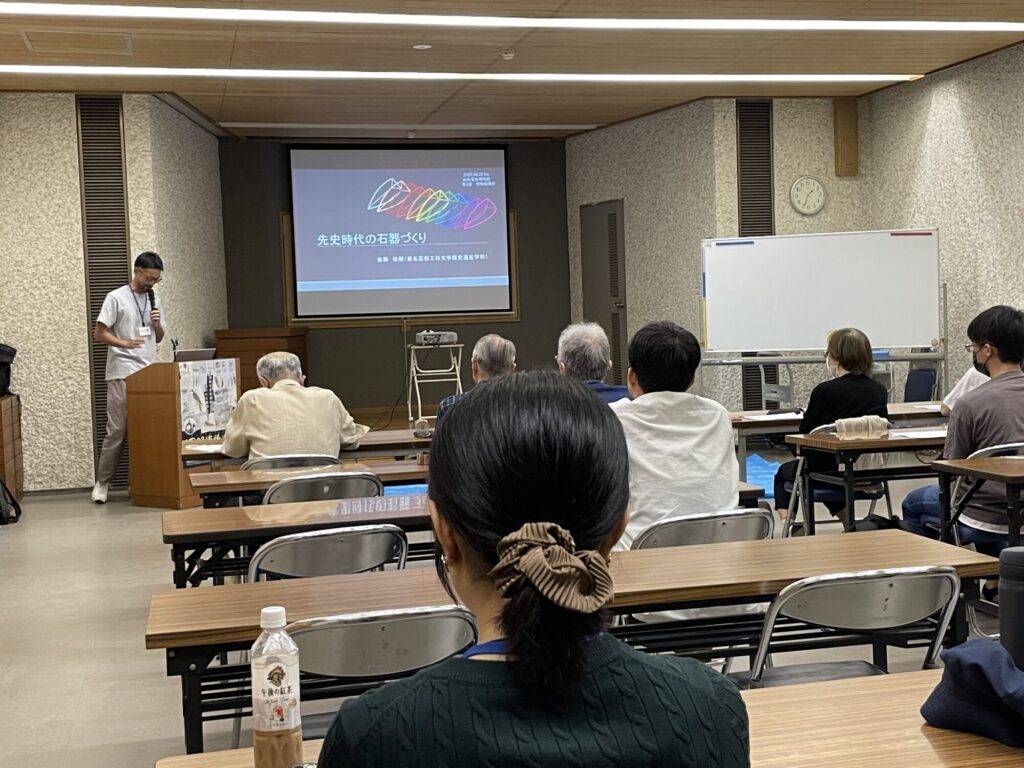 詳細な解説と共に、石器製作の実演が行われたことで、先史時代の人々による石器づくりについて深く学ぶことができ、非常に興味深い講演となりました。