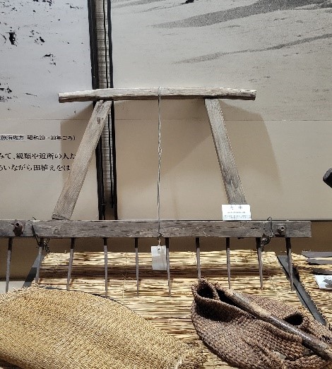 両方とも、農耕に使用した道具です。馬に引いてもらい、耕した土をくだいたり、田ならしをしたりしました。機械が登場するまでは、馬は大切な農作業のパートナーでもあったのですね。