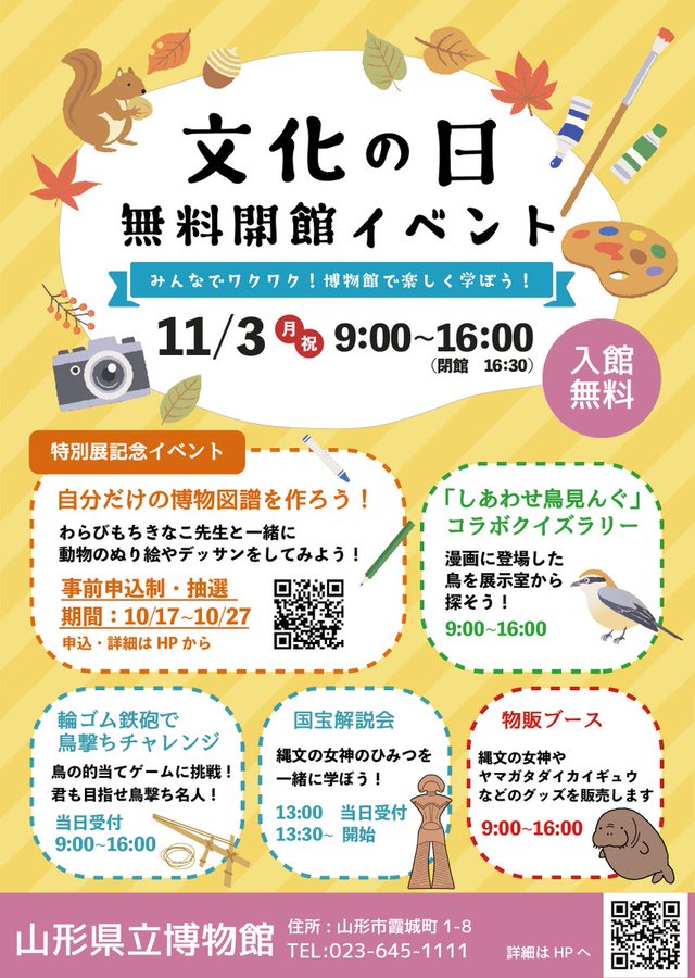 開催日 | 令和7年11月3日(月・祝)9:00~16:00(開館時間 9:00~16:30) |